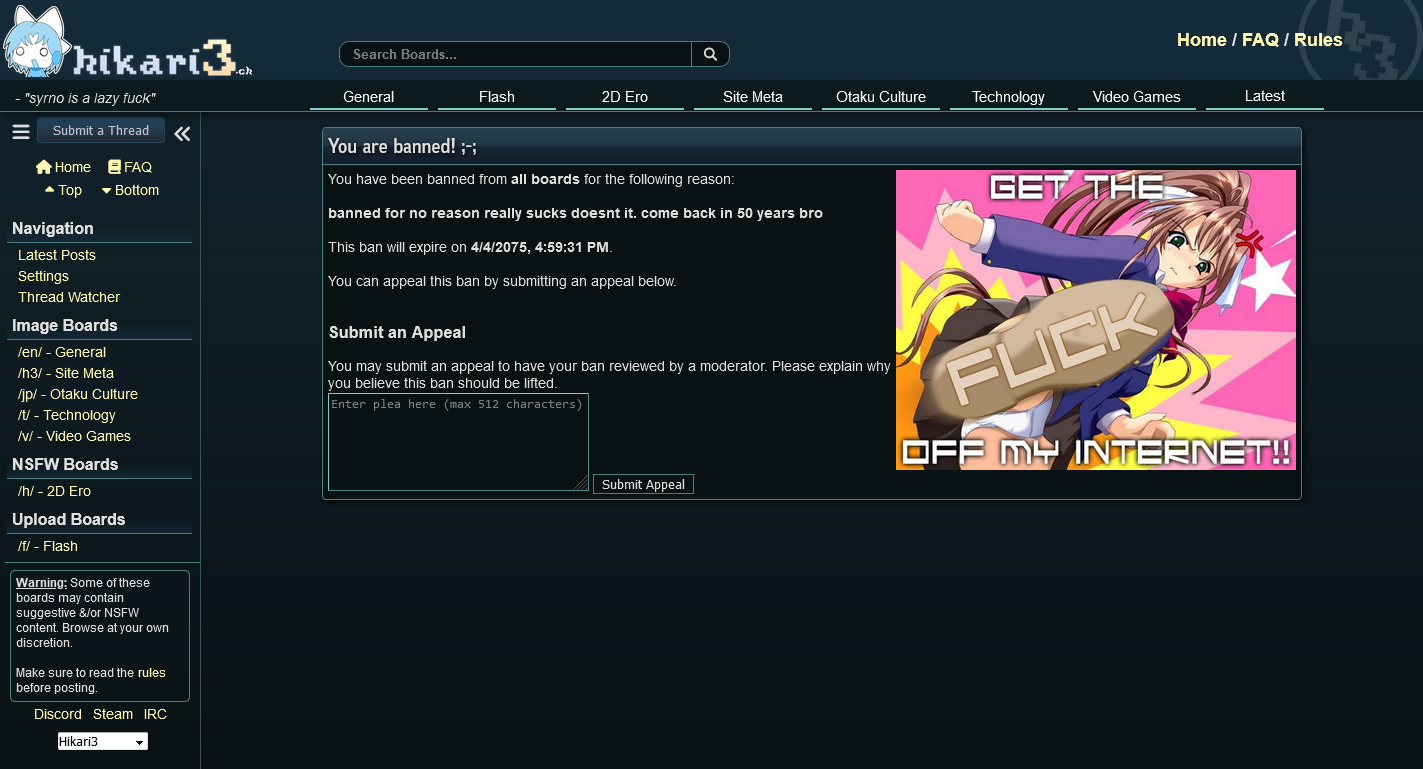 - May 21 2025: 2nd Birthday - hikari3 Rewrite - koshi is finally finished (in a somewhat functional state). It is also hikari3's 2nd birthday, meaning we managed to stay alive for 2 years. Many bills were paid. Many debts were had. 4chan is already back earlier this month so activity sharply declines. Many bugs were found. /i/ listing is replaced with /h/ - 2D Ero.