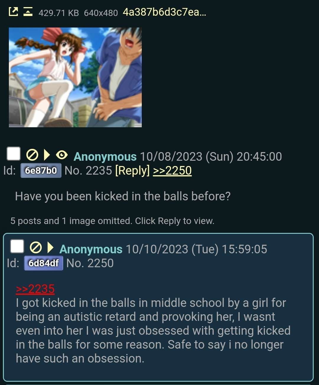 - July 11 2023: Merged /a/ - Anime & Manga and /jp/ - Japanese Culture into /jp/ - Otaku Culture to reduce board bloat. Also we got raided by a certain site for the first (of many) times. I started doing daily backups soon after.